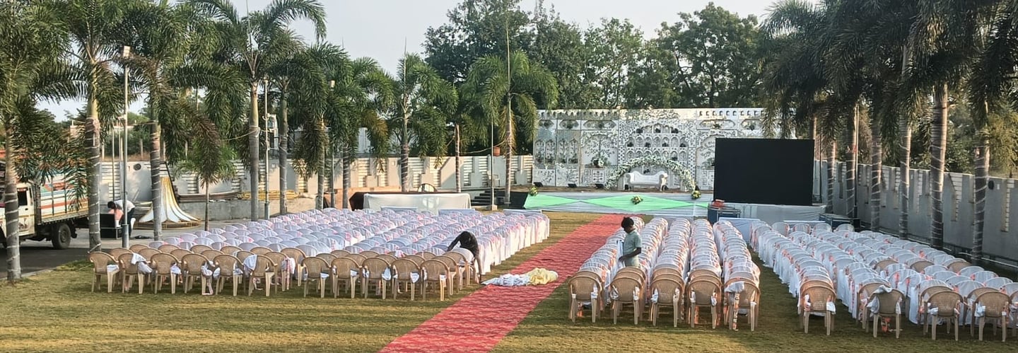 At Sai Krupa Lawns, we offer a beautiful space perfect for weddings and large celebrations, blending comfort with elegance.